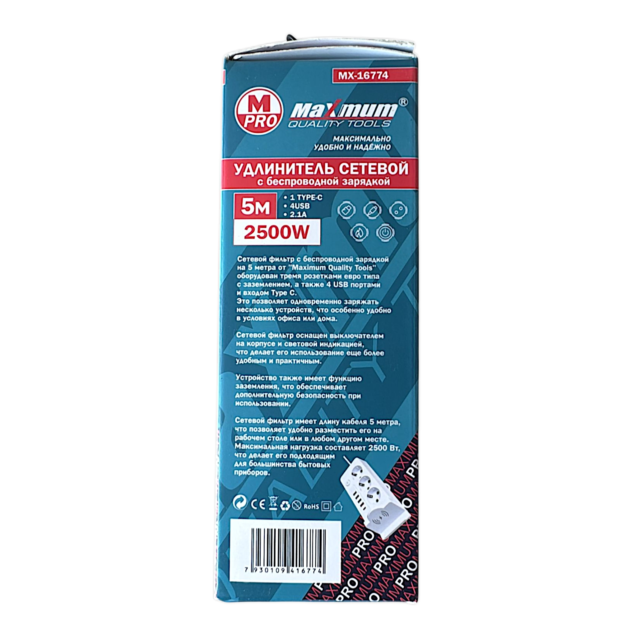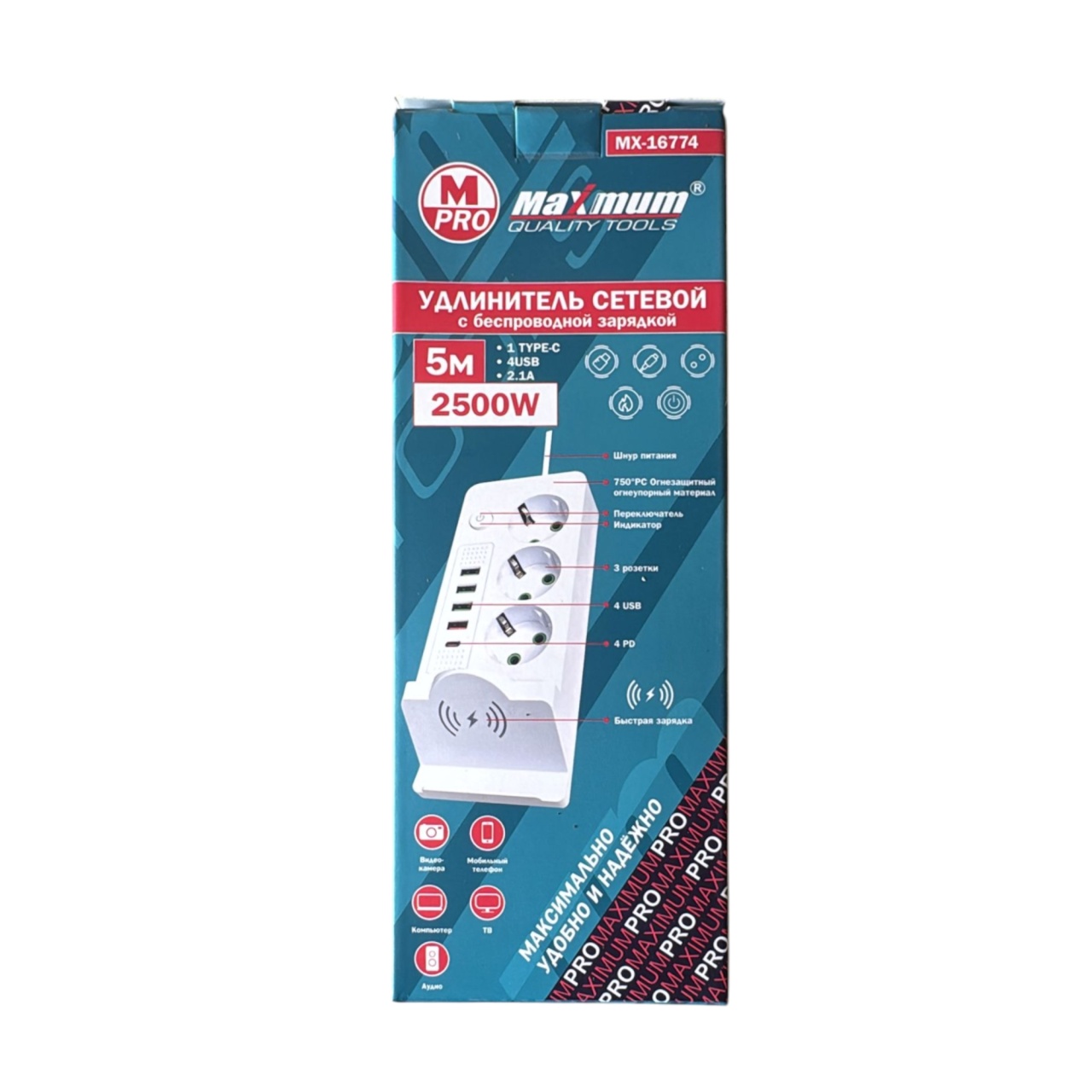 [~NAME] => Удлинитель с заземлением 2 м, плоский, 3 розетки EU_UK_US, 5 USB портов,Type C,T05, "MAXIMUM" MX 148