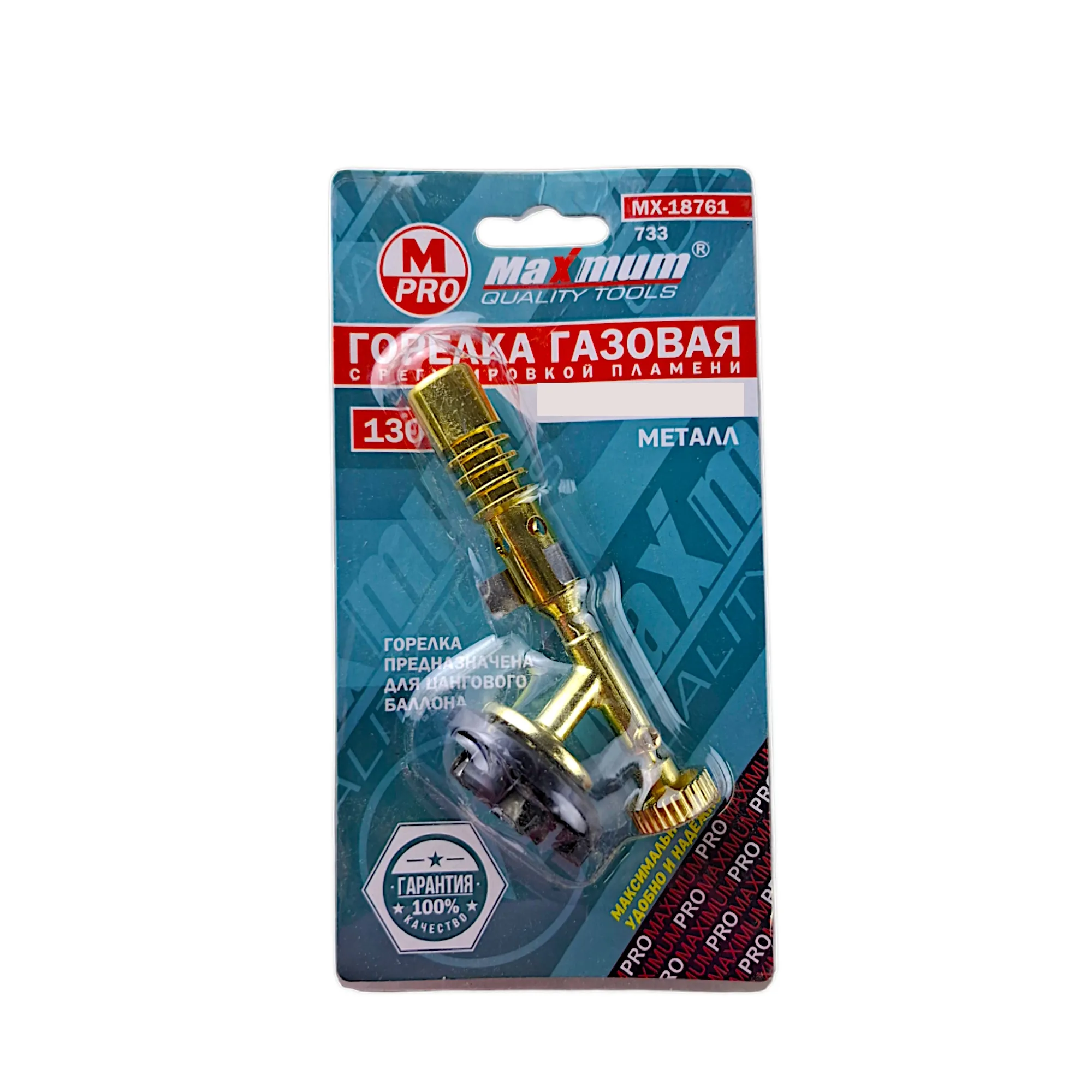 Газовая горелка металлическая,1300°C, для цангового баллона от "Maximum Quality Tools" имеет компактные размеры длина всего 110 мм.