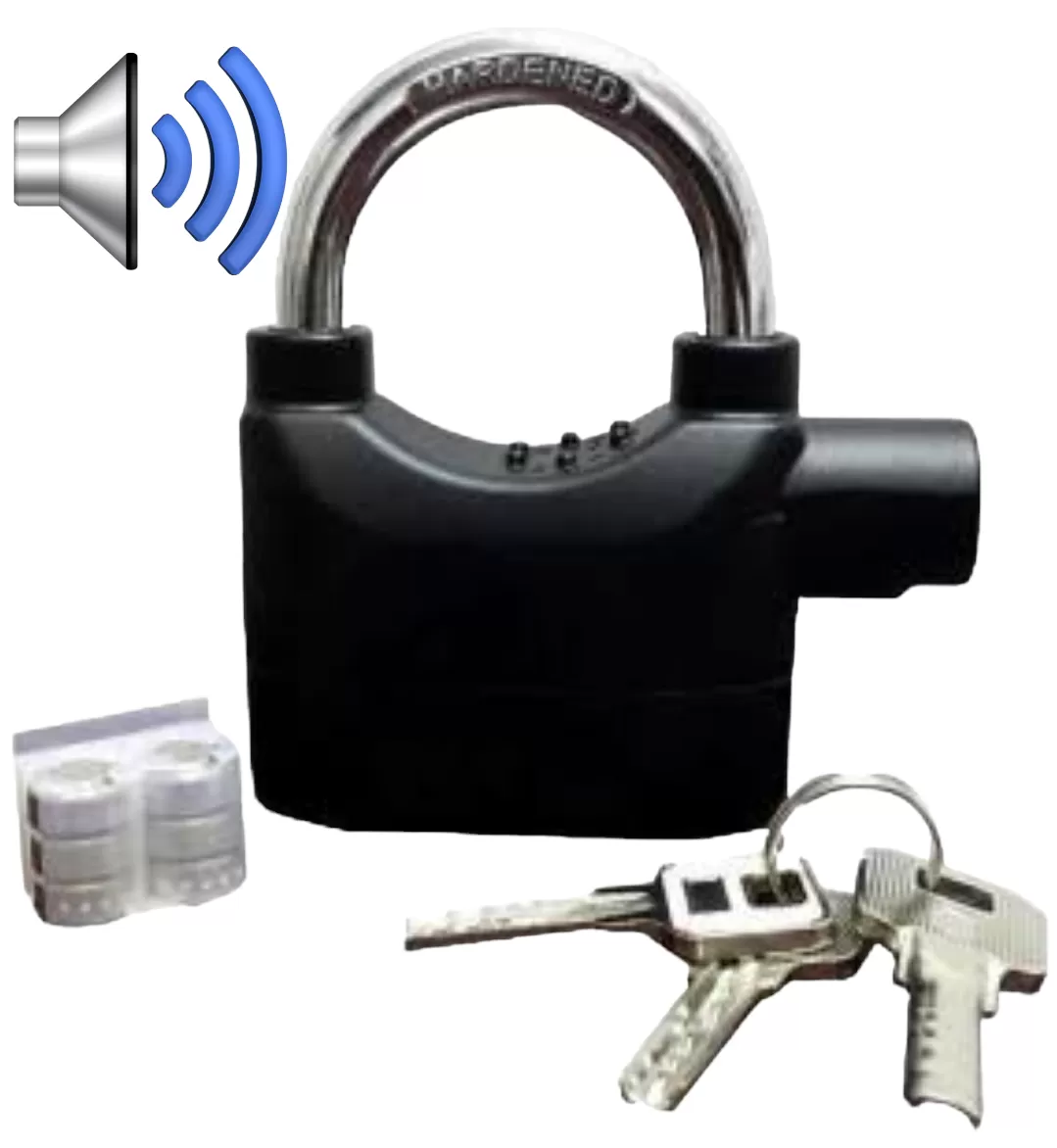 Более эффективным средством охраны этот замок делает активация функции тревоги. Чтобы использовать охранные свойства замка необходимо вставить специальным образом дужку замка и закрыть его. Через 30 секунд замок станет на охрану и будет реагировать на любые действия с замком (при постукивании, вибрации, любом перемещении замка с места).